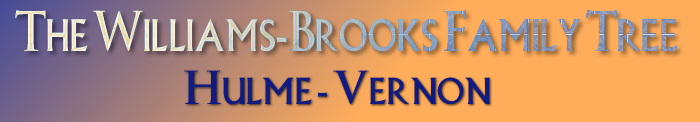 At the time of the 1901 Census, her oldest brother, Ernest was a tram conductor, and John was a lurryman for a Carriers company. A lurryman was the driver of a lurry, which was obviously where the more modern English term, lorry comes from (for North American readers - a truck). Of course, both these occupations involved horse-drawn vehicles! There is an excellent list of old occupations at: Eveline's older sister, Ada was an underclothing machinist when she would have been aged 15 or 16. On this Census, a Joseph Hulme, aged 26, lived right next door with his wife and son, which tempted me to think he might have been the eldest child of John and Ada, but he would have been born two years before they married, and he wasn't living with them at the time of the 1881 Census. It's possible he was either John's younger brother or a nephew, but it may just be a coincidence that they have the same name. Previous Generation: Eveline's mother, Ada, had been born Ada Vernon, December 22nd 1852. More information on Ada and the Vernon branch can be found on the VERNON-RILEY PAGE. John Hulme's parents were John and Esther Hulme (nee Willett). Please go next to the HULME-WILLETT PAGE.