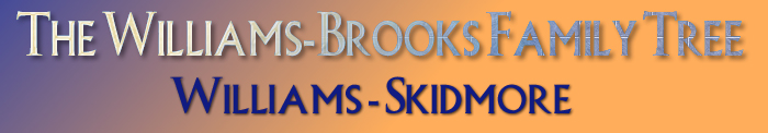 Previous Generation: Walter's parents were Daniel and Emma (nee Krinks) Williams. For information on Lillie's parents and brothers and sisters please go to the Skidmore page. * Reprinted by permission. Copyright (c) 1999 by Intellectual Reserve, Inc. ** Displayed with the permission of Ancestry.com